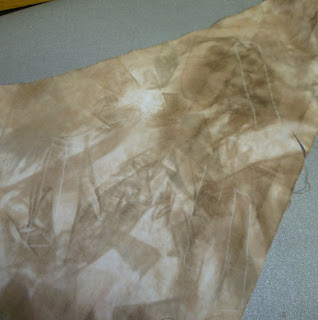 Step 6 - look for wicket stump fabric. Find a cloth I used to wipe up walnut ink. How clever to be a saver rather than a thrower away-er! Trace stumps cut from inspiration image.