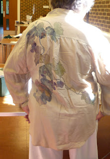 GillG - forget what she was sewing, but I loved her painted blouse.